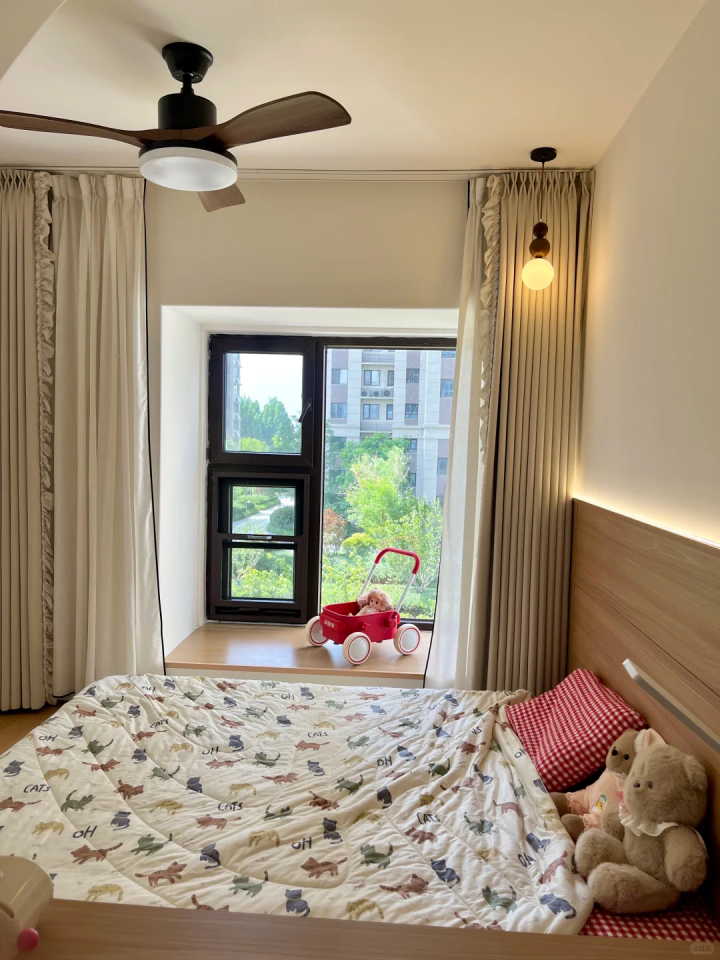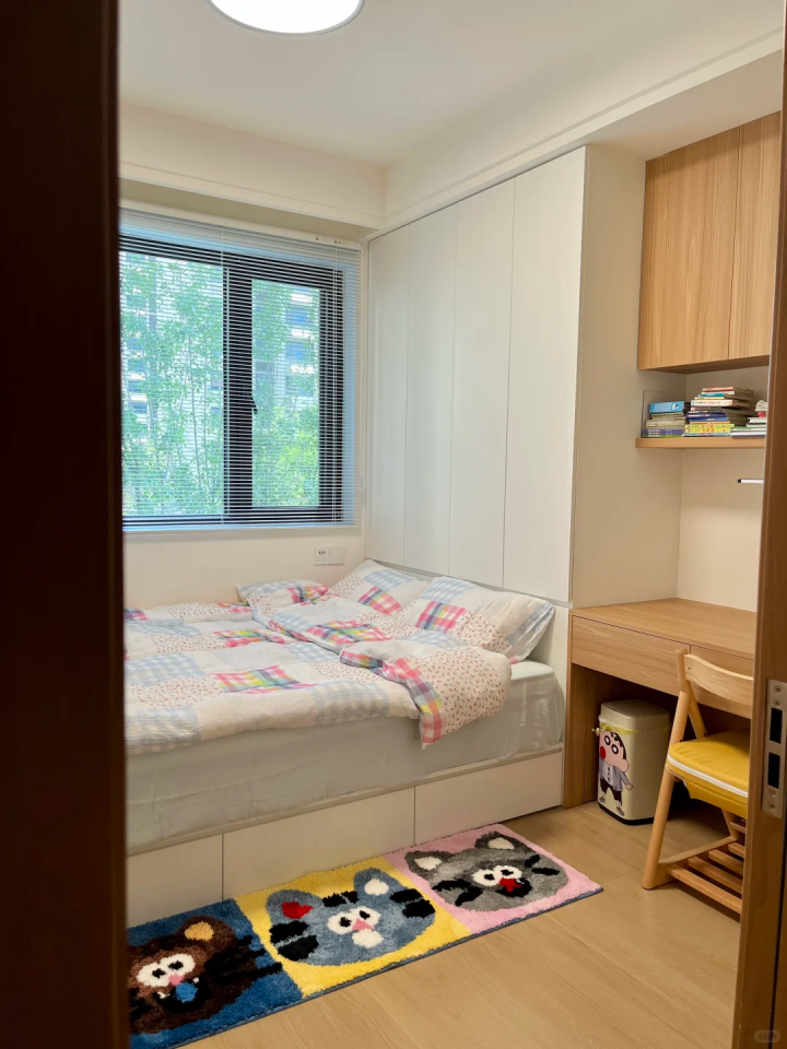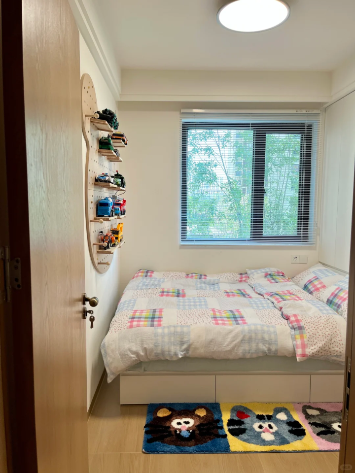 这是给儿子准备的儿童房。面积:3✖️2.75米,房间很小,追求实用还是做了榻榻米。