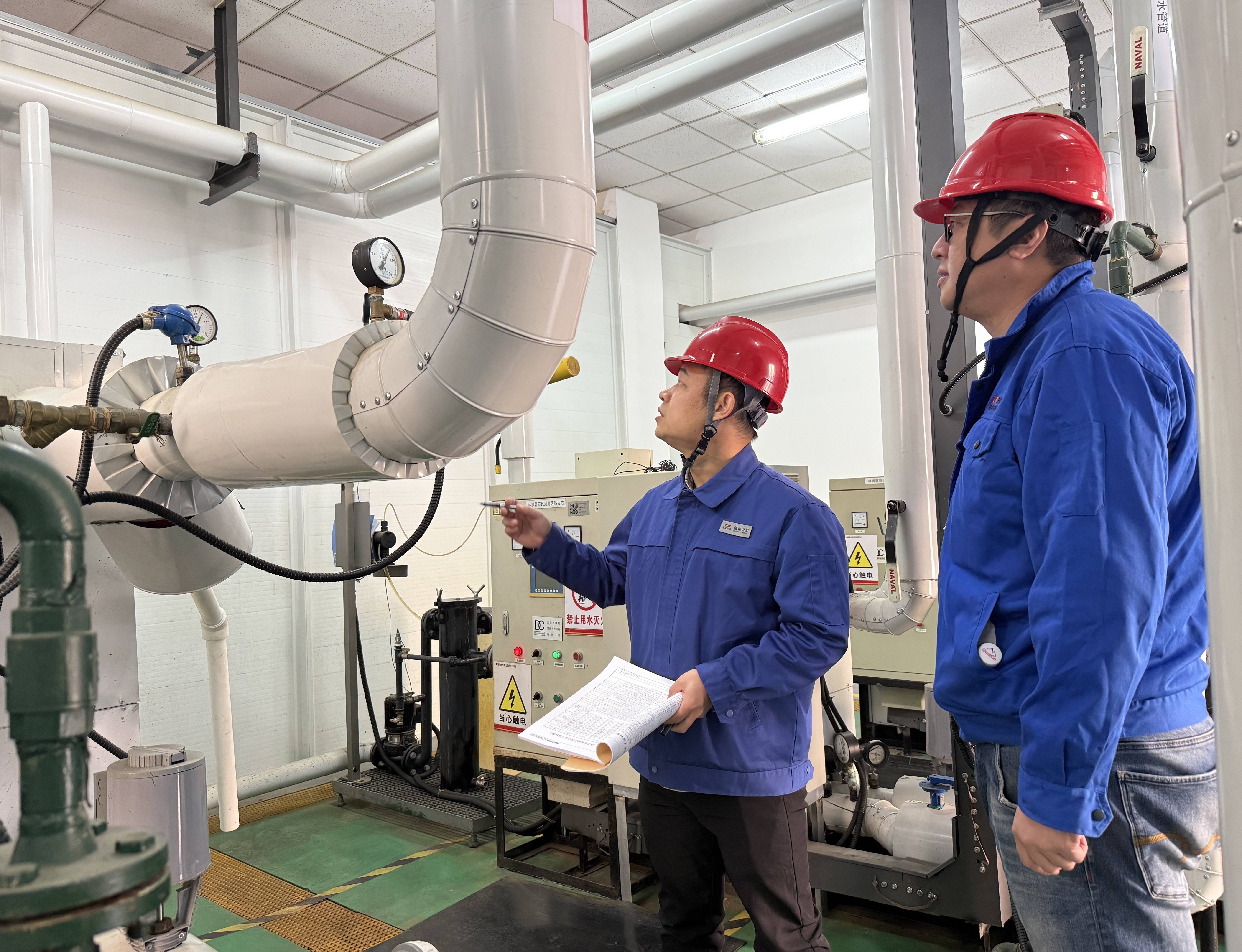 11月15日,在天津市热电有限公司东北郊第二供热服务中心林枫馨苑热力站内,工作人员在巡检。新华社记者 徐思钰 摄温暖传递,既靠“人”的坚守,也有“技”的赋能。