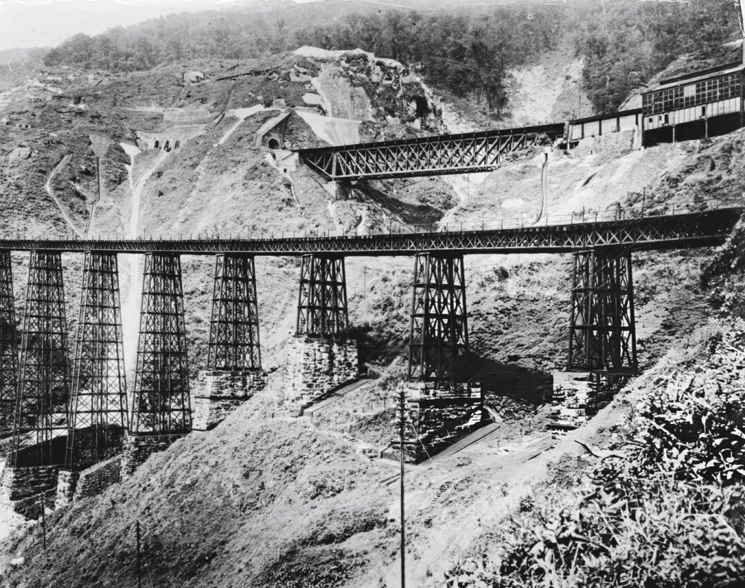 巴西圣保罗铁路上的格罗塔·丰达桥。这条长139公里的铁路于1867年建成,是将咖啡豆从圣保罗高地运输到桑托斯港的主要交通线路