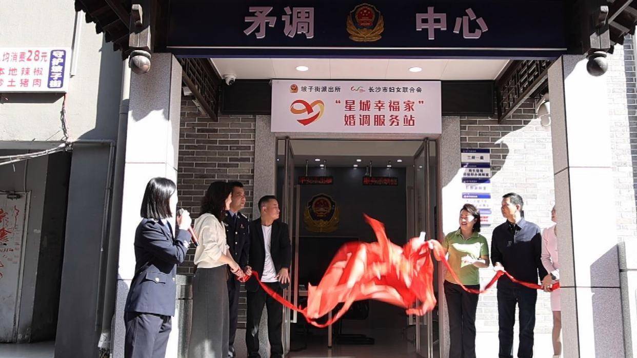 11月16日,长沙市坡子街派出所前坪人头攒动、暖意融融。在“11·25”国际反家庭暴力日来临之际,由长沙市妇联、长沙市综治中心主办,市婚调委、天心区妇联、坡子街派出所等多家单位共同承办的“幸福家 警民联 法同行”——长沙市“星城幸福家”婚调服务站入驻坡子街派出所活动启动仪式在此举行。以“警民协同+非遗普法”的创新模式,为市域社会治理现代化注入新活力。